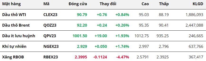 Cụ thể, giá dầu WTI tăng 0,84% lên mức 90,27 USD/thùng. Giá dầu Brent tăng 0,26% lên mức 92,20 USD/thùng. Như vậy,