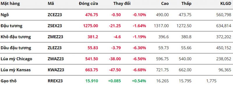 Chốt tuần 25 – 30/9, trên thị trường nông sản, ngoại trừ mức tăng 0,54% của gạo thô, tất cả các mặt hàng còn lại đều đóng cửa tuần giao dịch 25 – 30/9 trong sắc đỏ. Cả ba mặt hàng họ đậu đồng loạt giảm giá. MXV cho biết, đà giảm của giá đậu tương kỳ hạn tháng 11 đã tiếp tục được nối dài và khiến giá chạm mức thấp nhất trong vòng hai tháng qua. Sau 4/5 phiên giằng co, thị trường đậu tương chịu áp lực bán mạnh mẽ trong ngày cuối tuần trước tác động của các số liệu gây bất ngờ trong Báo cáo tồn kho ngũ cốc (Grain Stocks) của Bộ Nông nghiệp Mỹ (USDA).