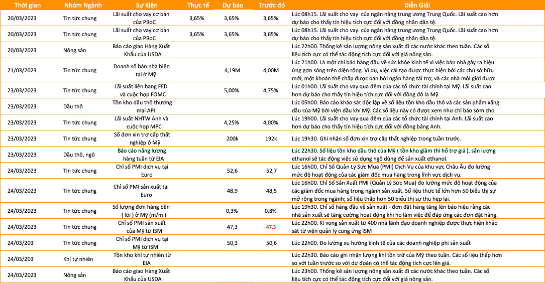 Tâm lý hoảng loạn của thị trường vào tuần trước bởi những rủi ro trong hệ thống ngân hàng tạm thời được xoa dịu nhờ sự can thiệp từ phía Chính phủ và Ngân hàng Trung ương. Ngân hàng Credit Suisse đã được Ngân hàng hàng đầu Thuỵ Sỹ là UBS mua lại nhờ sự hậu thuẫn từ Chính quyền của quốc gia này với khoản tiền 3,2 tỷ USD, nhằm tránh xuất hiện rủi ro mang tính lan toả. Điều này đã hỗ trợ dòng tiền quay trở lại các thị trường rủi ro, và tài sản trú ẩn an toàn như vàng cũng trở nên kém hấp dẫn hơn.