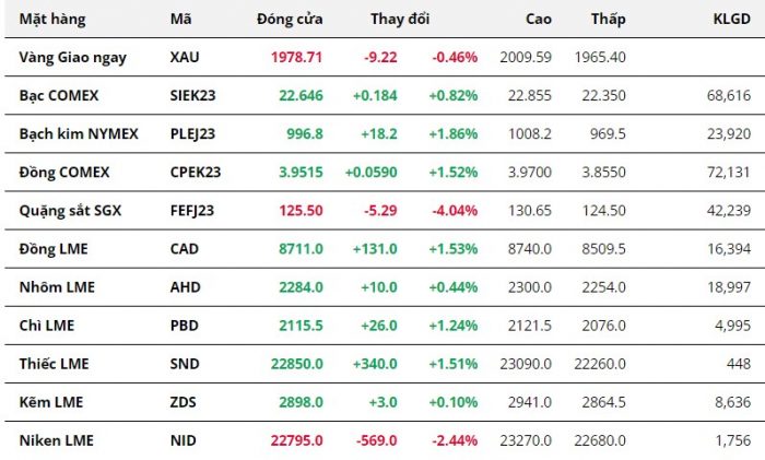 Đối với nhóm kim loại cơ bản, mặc dù mở cửa phiên với lực bán chiếm ưu thế khi lo ngại suy thoái kinh tế vẫn còn tiềm ẩn, song yếu tố kỳ vọng về cung cầu đã kéo giá đồng COMEX đảo chiều tăng trở lại, chốt phiên với mức tăng 1,52% lên 3,95 USD/pound. Đồng giám đốc bộ phận kim loại và khoáng sản của tập đoàn kinh doanh kim loại hàng đầu Trafigura vào hôm qua cho biết, giá đồng có thể đạt mức kỷ lục trong vòng 12 tháng tới do lượng dự trữ rất khan hiếm, thậm chí trên 12.000 USD/tấn. Trong khi đó, nhu cầu tại Trung Quốc cũng đang hồi phục, khi sản xuất đồng tinh chế phục hồi, thúc đẩy xuất khẩu đồng Cathode 2 tháng đầu năm tăng 168% lên 54.996 tấn từ mức 20.530 tấn trong cùng kỳ năm ngoái.
