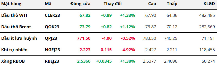 Sức ép bán gia tăng từ đầu phiên bất chấp thoả thuận mua lại ngân hàng Credit Suisse của Ngân hàng lớn nhất Thuỵ Sĩ, UBS. Trước những sự kiện tiêu cực của thị trường tài chính trong thời gian gần đây, các nhà phân tích của Goldman Sachs đã tiến hành hạ dự báo giá dầu Brent, xuống dưới 100 USD/thùng và chỉ còn 94 USD/thùng trong 12 tháng tới và 97 USD/thùng trong nửa cuối năm 2024.