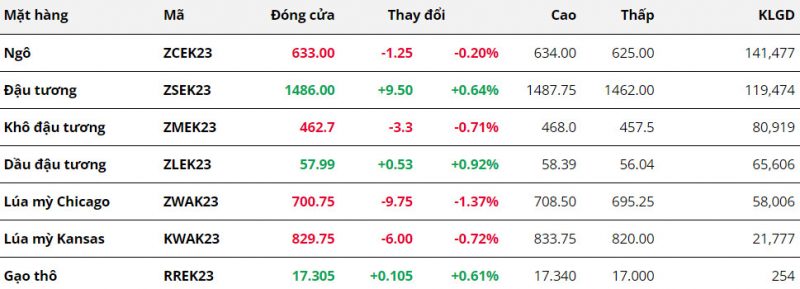 Mặc dù có thời điểm đã giảm tới 2% nhưng dầu đậu tương vẫn đóng cửa trong sắc xanh. Giá mặt hàng này chủ yếu đi theo diễn biến của giá dầu thô, đặc biệt là trong những phiên thị trường biến động mạnh như giai đoạn gần đây. Đối với khô đậu, giá vẫn tiếp nối đà suy yếu trong phiên thứ 4 liên tiếp về mức thấp nhất trong vòng 2 tháng qua.
